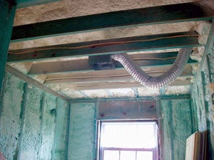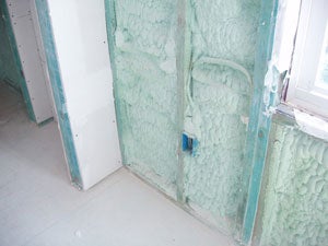 Spray foam was used extensively on this home to increase the home’s airtightness and provide gap- and void-free insulation of the framing cavities.