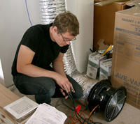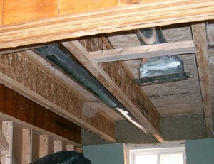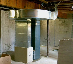After construction was complete but before the family moved into the Westford House, BSC tested the performance of the house to make sure it met BSC’s Building America Performance Criteria. A blower door test was performed to test for overall air infiltration to the house. The maximum air leakage allowed is 2.5 in2 per 100 ft2 of enclosure area. The Westford House air leakage was tested to be 2.1 in2 per 100 ft2 of enclosure area, lower than the allowable ratio and meeting the performance target. The Duct Blaster® test that was performed found 145 CFM total duct leakage at 25 Pa. While this is a higher CFM than what we would like to see, which is typically 10% of system CFM, it is fairly typical with sheet metal ductwork. However, the Duct Blaster® test also found no measurable duct leakage to the outside, making the high system leakage more acceptable.
