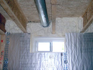 Foundation Assembly: Conditioned basement with two 2” layers foil-faced polyisocyanurate insulating sheathing (R-26) applied to wood furring strips, 2” XPS (R-10) installed below concrete slab.
