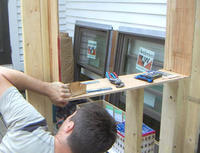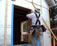 Design Challenge: Installing Windows & Doors in 4” of Foam So how do you install windows and doors when you have 4” of insulating foam sheathing, which just so happens to have no structural strength, on the outside of your wall? This was the question that BSC set out to answer. First, there was the idea of the plywood box, then came the mock-ups on the back deck of the office, and finally the drawing details. Construction on the Westford House started soon after and along with the framing, the plywood boxes were installed. BSC went to the site and demonstrated how to install and properly flash the windows. The volunteers then finished the job, successfully implementing the construction details with the plywood box. |