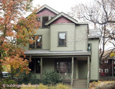 The owners of this single family Victorian had previously gone through a retrofit in the spring of 2009. The upgrades included adding closed-cell spray foam insulation to the underside of the replacement roof as well as to the existing field stone foundation walls. Work had been also done to modernize the radiant hydronic heating distribution system, which was originally steam. With the financial and technical support offered through National Grid’s Deep Energy Retrofit Pilot Program the owners decided to continue making the improvements to the house and incorporate a deep energy retrofit (DER) to the remaining parts of the house.