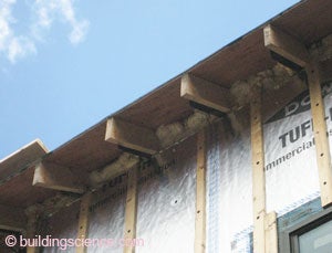 This project demonstrated robust means of maintaining continuity of the water, air and thermal control at attached porch roof and porch deck connections by temporarily supporting the structures, cutting them back from the wall, installing the air, water and thermal control layers, then re-attaching the structures over these layers. The continuous airflow control layers enabled by this measure likely contributed to strong air leakage reduction.