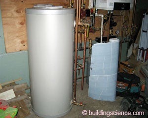DHW: SuperStor® Ultra hot water storage tank connected to the boiler located in the basement.