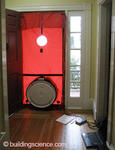 BSC performed a pre- and post-retrofit air leakage testing to determine the improvement in the air leakage of the whole house. The pre-retrofit air leakage measurement was 1657 CFM @50 Pa (3.80 ACH 50) and the post-retrofit measurement was 655 CFM @50 Pa (1.50 ACH 50).