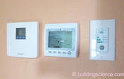 Ventilation: For each unit, a Venmar EKO 1.5 HRV (ECM motor and 80% recovery efficiency); outside supply ducted to common space; inside exhaust taken from bathroom; units for upper two floors installed in 3rd floor kneewall space; unit for 1st floor installed in basement.
