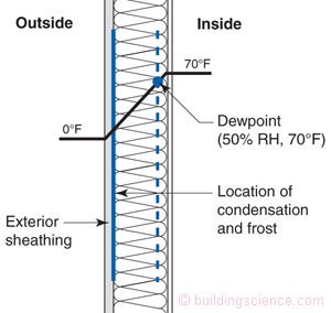 Figure 1: Dew Point Location—The frost and condensation end up on the backside of the sheathing, not at the dew point location.