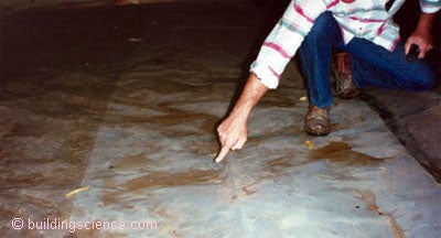 Photograph 6: More Crawlspace Condensation—How did the water get on the top of the plastic ground cover? It condensed out of the ventilation air.