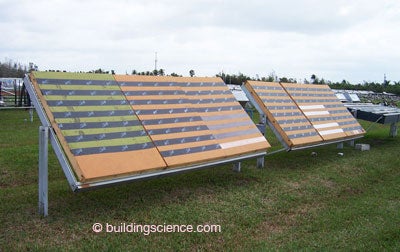 Photograph 13: Horizon Homes Test Panel - You would be surprised at the number of homebuilders who are testing the stuff they plan to use to see how it works. Our rule-of-thumb is that if it works exposed like this for 2 years you are pretty much good to go.