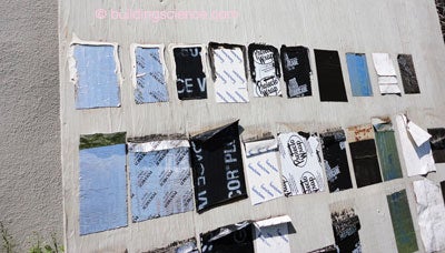 Today’s tapes are resistant to UV and heat and rain. How do we know? We stick them outside for years and watch them and we also take apart older buildings that have used them to see how well they did (Photograph 10). Nothing beats real world exposure (Photograph 11, Photograph 12 and Photograph 13). The real world exposure testing is used to develop (“calibrate”) short term “accelerated aging tests”.6