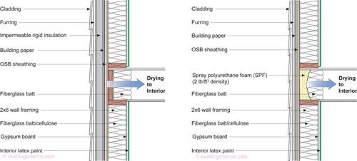 In the old days assemblies worked just fine with no vapor barriers on either side. That approach still works today, but for reasons that are difficult for me to understand it is not used as often as it should be or could be. We looked at this in “BSI-071: Joni Mitchell, Water and Walls” and we will look at it again here.