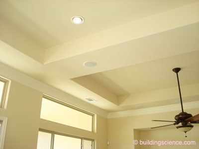 - I said it this way to get a rise from a whole bunch of folks. This statement is true only with simple houses built like square boxes with flat ceilings without hundreds of penetrations for stupid homeowner stuff – like the stuff in my house – and certainly without architects on drugs being clever with massing making “a statement”. With complex custom homes with complex roof and ceiling geometries or where you are doing complex retrofits the unvented conditioned attic approach wins because it is the only option. You can’t get the ceiling airtight nowhere no-how in those situations.