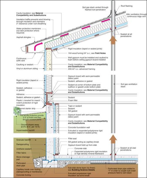 - Inter-relationship of first three points – Since a builder and a homeowner’s ability to employ or stick to each of the three strategies above will vary, make sure that an inability to fully employ one strategy is compensated for by complete rigor with the others. For example, if for some reason, chemical treatment of soil or building materials is not an option, then complete rigor in moisture control and ground cover is required.