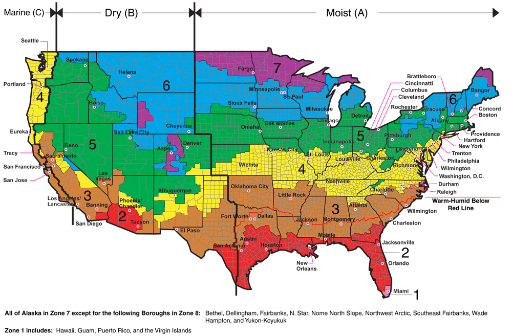 - Different Climate Zones are categorized into hygrothermal regions.