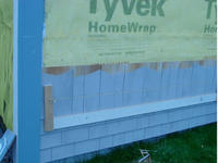 Wood lap siding has traditionally been installed tight to building paper drainage plane. This creates an intermittent drainage space and is largely dependant on the profile of the siding. This type of installation works well for most instances, however it often reduces the service life of the siding material and has been attributed to some building failures. Ideally wood siding and cementitious lap siding should be installed over vertical wood furring or a plastic spacer mesh to create a vented and drained space behind the cladding.