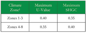 Windows with the following climate-specific1 performance values must be used. Windows outside these ranges can be used in certain designed circumstances, but these are our general guidelines to maximize both energy performance and thermal comfort.