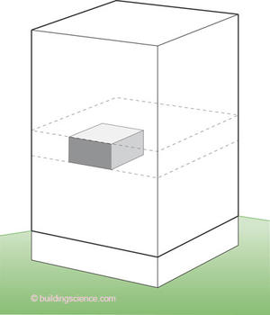 Figure 6: Punched Openings—There are only two kinds of windows in the world–those that leak and those that will leak. Openings need to be wrapped with an “under window gutter.” Note how the exterior rendering is wrapped under the window unit.