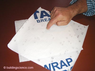 To my knowledge no product that has passed the four Joe Tests has failed in the field. To my knowledge no mechanically perforated product has passed the four Joe Tests. All the ones that I have tested this way fail Joe Test 3 and Joe Test 4. The polymeric fibrous, the non-porous permeable film and micro-porous film products all pass the four Joe Tests along with old fashioned tar-paper.