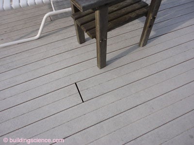 Photograph 8: Plastic Decking—Use shorter pieces to make the gaps smaller. But no matter what you are going to get gaps