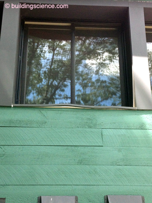 Photograph 3: Hardboard Siding Getting Thicker—The thickening happens first at the bottom edges of the boards at the overlap. It was often called “brooming” after the bristles of a broom that flair out at the bottom. It was as if the wood was trying to get back to its original density.