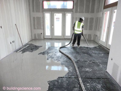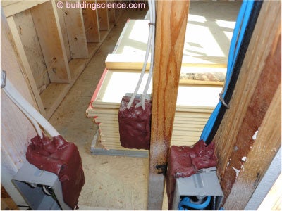 Photograph 2: More Compartmentalization Air Sealing—Bottom of walls are sealed fabulously well when gypcrete floors are used.