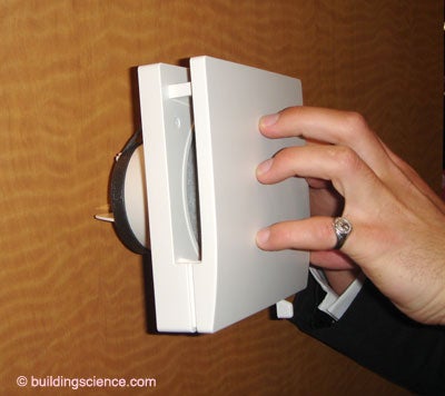 Photograph 5: High Tech Big Hole—Good for about 25 cfm, so you need three or four per apartment. They diffuse the incoming air to avoid cold spots and drafts.