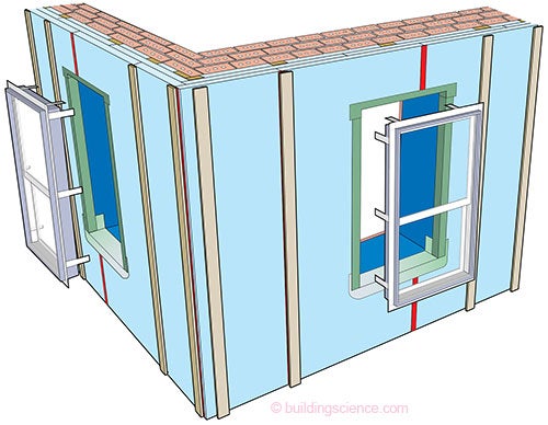 Figure 4: “Outies” - The physics calls for “outies”. With “outies” the thermal control layer of the wall easily lines up with the thermal control layer of the windows.