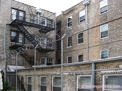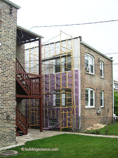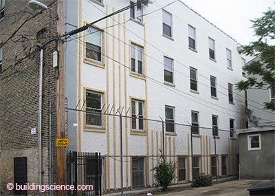 So now what? Fix them up? They are horrible thermally. They have to be insulated. There are only two choices—insulate them on the inside or insulate them on the outside. Once again I demonstrate my keen eye for the obvious. The physics argues for the outside. And when you do it from the outside you don’t give up interior space. However, “historic look” and the preservationists argue for the inside. But not all uninsulated Chicago masonry buildings are historic. And some of them are down right ugly. Many could do with an “insulated face lift”…a deep retrofit from the outside…a Chicago deep-dish retrofit. So that is where we are going to go. We already did the inside insulation thing way back when (BSI-047: Thick As A Brick).