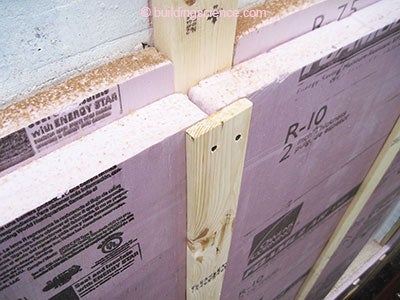 Photograph 8: Next Step—Add the rigid insulation. Layer it between the furring and then over the entire kit and caboodle in continuous layers.
