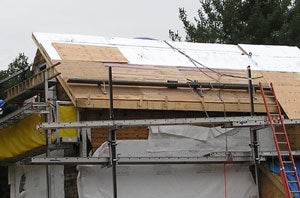 BSC applied its 10-20-40-60 insulation performance guideline to the overall project plan. The guideline was met through installation of a new insulated slab, application of closed-cell spray foam insulation to the interior of the field stone foundation walls, and the addition of thick exterior insulation to the roof and wall assemblies. BSC developed details to achieve robust water management, maintain air and thermal barrier continuity, and respect the historic character of the property. The exterior of the insulating sheathing was designated to perform both as drainage plane and air barrier for the wall assembly. Comprehensive testing has evaluated the effectiveness of the air barrier system. Utility bill monitoring will provide further assessment of the overall efficacy of the high performance renovation.
