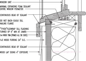 Wall section: For each type of exterior wall cladding (and there are three—brick, stucco, and lap siding), the wall assembly is tuned in terms of maintenance of the drainage plane, back-venting of the cladding, air infiltration barrier, vapor retarding properties of materials, and thermal insulation employed. Each wall system is an integrated system controlling the movement of heat, moisture, and air.