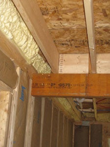 Despite the push toward advanced framing with 24” o.c. spacing, the building includes a significant amount of non-structural lumber such as headers in non-bearing walls, numerous extra studs, solid partition blocking and corners framed with more than 2 studs.