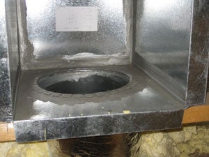 The total air distribution system leakage was higher than expected given the obvious attention to duct sealing by the HVAC contractor. The system leakage of the nominal two-ton system was 244 cfm at 25 Pa pressurization. Inspection of the cabinet of the high performance air-handler and furnace found inspection ports without covers and wiring sleeves without gaskets.