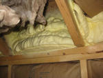 Project Highlight: Airtightness Spray foam insulation was used to maintain air flow control at typically challenging areas including: the separation between living space and the garage, behind the tub/shower enclosure, at the rim/band joist, and at the wall-to-roof transition. The level of airtighness achieved is a major factor in the homes energy performance. |